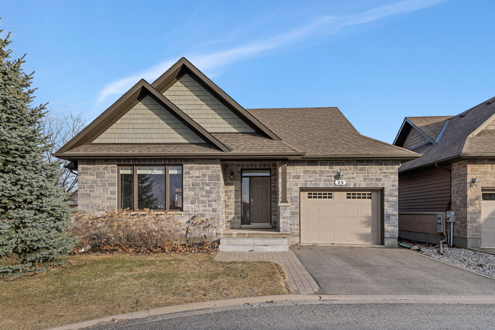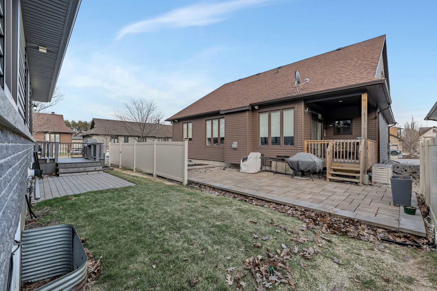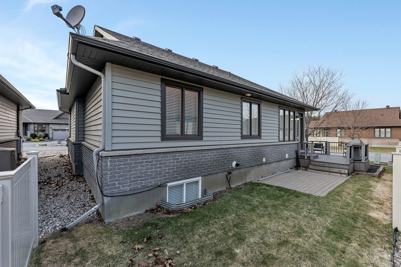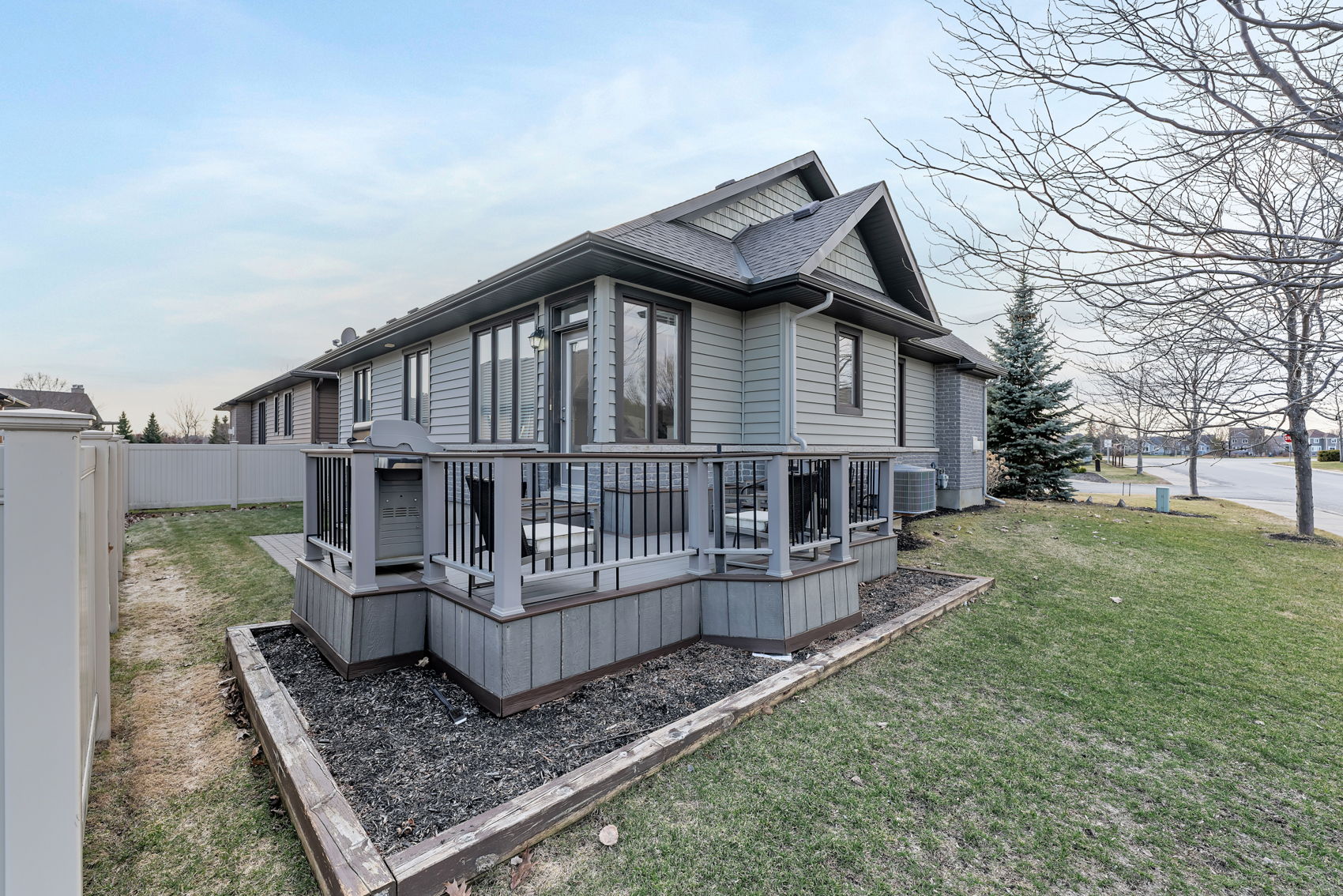 Discover Resort Style Living in this beautiful Trevino Model bungalow which was the model home for "The Legends" bungalow series in the much sought after neighborhood of eQuinelle. This meticulously kept home offers approximately 1857 sq. ft. of luxurious living space! A small association fee of $254 per month offers a carefree lifestyle. No more shovelling the snow, cutting the grass or even cleaning your windows! And you will be literally steps to the renowned eQuinelle Golf Course & a Membership to the Resident's Club is transferrable from the sellers to the new owners. Here you will enjoy all the very best eQuinelle has to offer. Discounted golf rates, a fitness centre, outdoor pool, pickle ball, tennis, library, cards, billiards, fitness classes and special events such as holiday parties and more! This bungalow is located at the end of a quiet court & boasts a large side as well as back yard with a wrap around composite deck. As you enter the spacious foyer you will be delighted to see the large living room with its big, bright window and cozy gas fireplace, open to the dining area - perfect for all your entertainment needs. The newly renovated kitchen offers new stainless steel appliances, numerous white shaker style cabinets, granite counters, a convenient kitchen island & pantry. The main floor primary bedroom is oversized and offers two clothes closets! The second bedroom is also generously sized. The main bathroom has been newly renovated. New high grade 100% waterproof laminate flooring throughout the main level. The professionally finished lower level offers extra living quarters w/a large family room, a secondary room which could easily be converted to a bedroom, a large 3 piece bathroom, a wet bar w/built-in mini fridge & microwave, a 3 person infra red sauna & an entertainment unit! There is also a large, storage area. An exceptional lifestyle awaits. Close to all the amenities of Kemptville, Hwy #416 and only 30 minutes to Ottawa. ~WELCOME HOME~